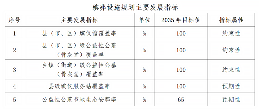 规划形成“县(市、区)级——乡镇(街道)级——村级”三级公益性公墓(骨灰堂)配置体系。规划县(市、区)级公益性公墓(骨灰堂)9处,乡镇(街道)公益性公墓(骨灰堂)87处,规划村级公益性公墓(骨灰堂)126处。